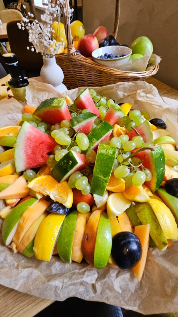 Klijent je želio da mu pripremimo plate sa voćem i lokalnim specijalitetima. Na platama su se našla selekcija istarskih sireva, bademi, orasi, smokve, dehidrirane jagode. Voćni kupovi bili su od lubenice, grožđa, limuna, dinje…
